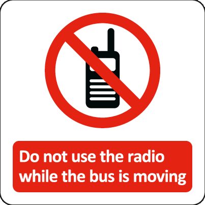 Do not use radio while the bus is moving (Interior) pack of 4
